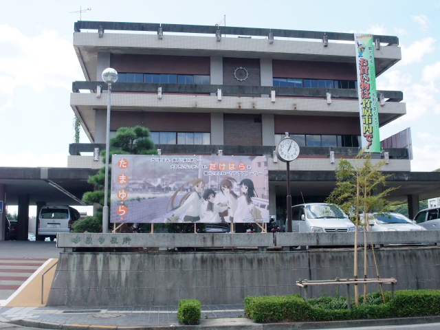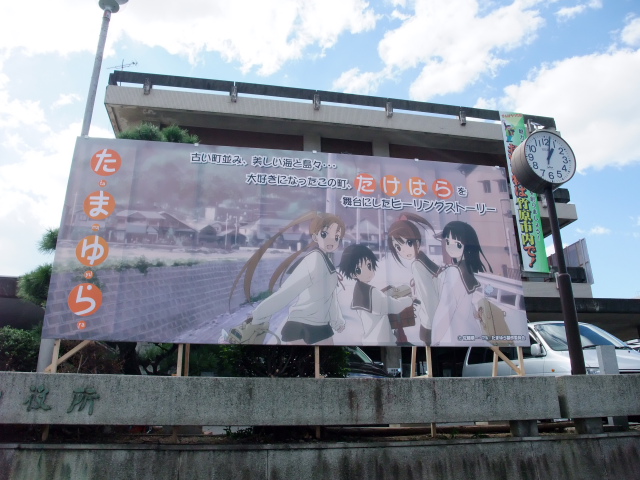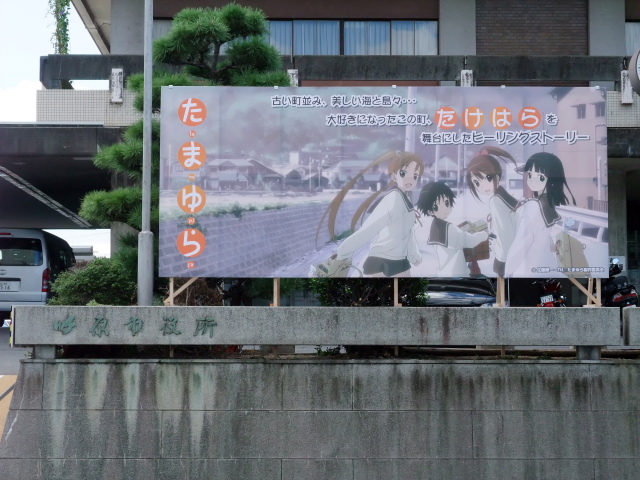 今回感じたのは、竹原市内のあちこちで「たまゆら」のポスターが貼ってあったり、市役所も「たまゆら」看板を大々的に掲げ