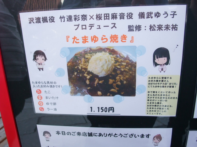 お好み焼き「ほり川」のメニューも「たまゆらの日」限定に(ぉぉ